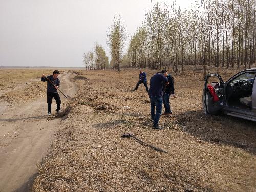 4月19日,园区职工不辞辛苦、顶着风沙,奔波一百余公里,移栽120余墩马莲,栽种在办公楼周边,丰富了园区植物种类,美化了园区环境,又够起到防风固沙的作用。